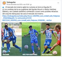 Desde el club blanquiazul se ha querido dar la bienvenida a Héctor Martínez a la que ya fue su casa y desearle la mayor de las suertes en esta segunda etapa como jugador del Águilas Fútbol Club.