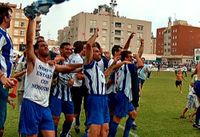 Final de la participación del Águilas en el torneo del KO con el Rubial puesto en pie aplaudiendo el esfuerzo y casi proeza de los jugadores blanquiazules que pusieron contra las cuerdas a un equipo, que con casi toda seguridad, la próxima temporada militará en la primera división del fútbol español.