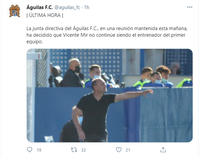 Al final empate a uno que deja al Águilas segundo en la clasificación con 7 puntos y dos partidos menos.
